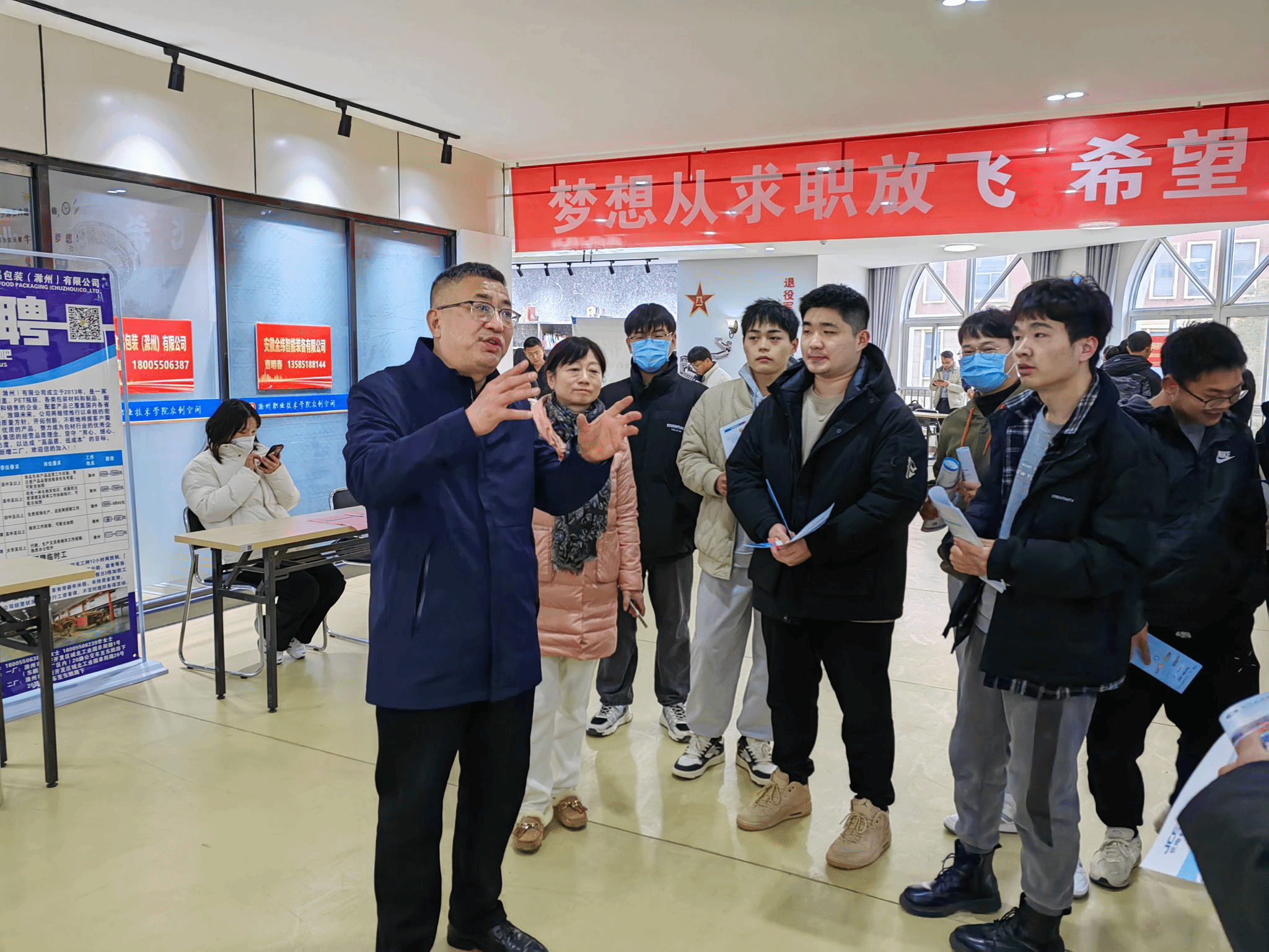 2月中下旬,金沙威尼斯官网与安徽科技学院联合培养的2023届本科教育毕业生将进入实习就业阶段,金沙威尼斯官网高度重视本科教育毕业生实习就业工作,经过前期调研和摸排,于2月17日下午召开2023届本科教育毕业生专场双选会。金沙威尼斯欢乐娱人城校长助理、招生就业处处长、安徽滁州职教集团秘书长穆松,滁州市人力资源和社会保障局就业科科长胡刚、滁州市南谯经开区经贸局局长陈俊莅临现场指导。