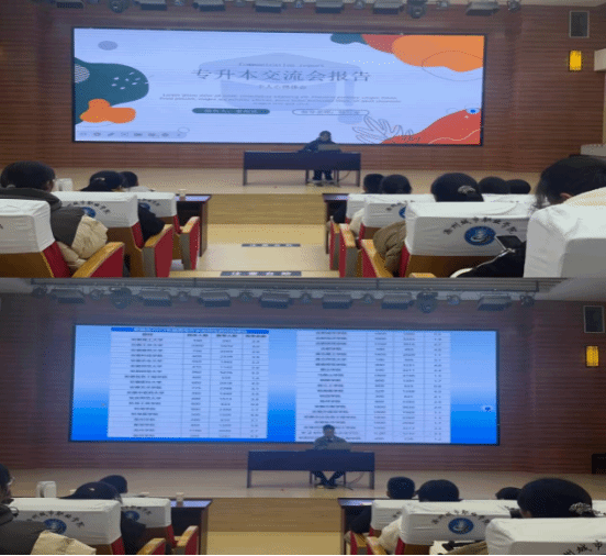 交流会上,三位同学各自分享了自己专升本的考试经历。首先,黄正权着重分析了专升本考试的政策要求,并就自己如何准备的专升本考试做出细致解答,从考试科目、各类题型的学习技巧为起点,分享了自己的考学经历,以此鼓舞大家,坚定学历提升的信念。接着,姜雨欣从“勤奋”“计划”“心态”三个关键词出发,毫不保留的分享了自己的学习经验。苗佳庆为大家讲解了如何考试以及通过自学成功升本的经历,让大家坚定能够考取理想的本科院校和专业的决心。三位同学或幽默风趣,引得现场同学们开怀大笑,或诚恳平和,引来同学们频频点头。现场座无虚席,气氛持续高涨,掌声一次次响起。