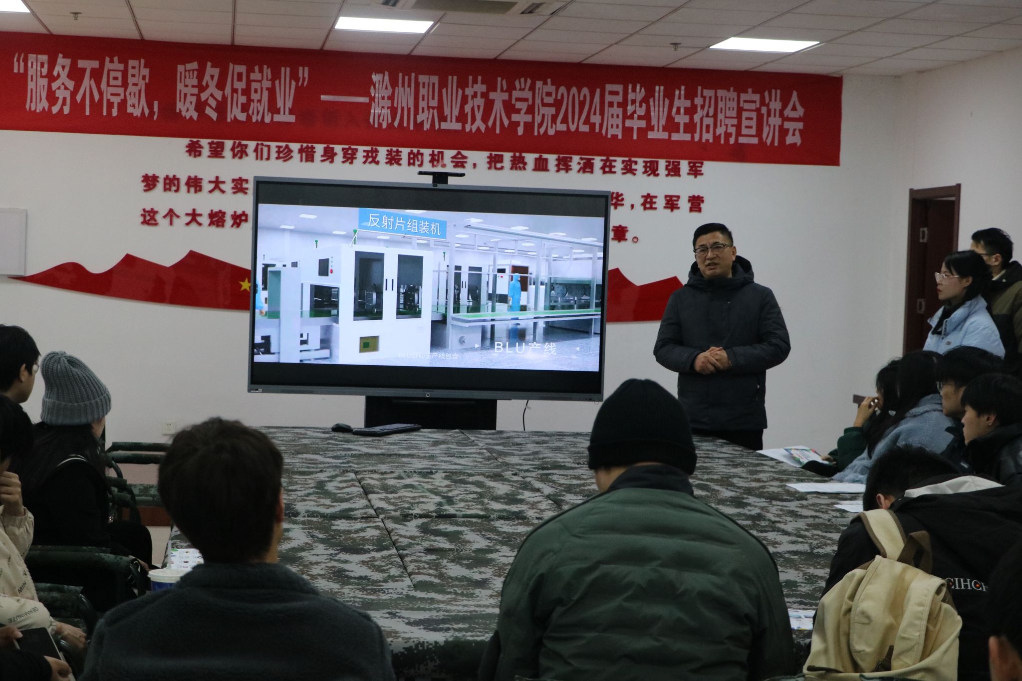 为确保毕业生在假期期间求职有渠道,就业有岗位。学校与12月26日和元月2日连续举办两场线上线下企业校园招聘宣讲会和就业岗位发布会,参与企业68家,提供就业岗位2216个。其中,滁州惠科光电科技有限公司、博晶科技(滁州)有限公司 、奶酪博士(安徽)食品科技有限公司、安徽卓畅新材料有限公司、德玛智能科技(滁州)有限公司和普瓦尼尼智能装备(滁州)有限公司等11家企业参加线下宣讲。企业代表们详细介绍了公司的文化、业务、未来发展方向以及学生关心的薪资待遇等问题,并在现场与学生进行了深入的交流和沟通,他们表示此次校园宣讲会是寻找优秀人才的好机会。在招聘环节中,同学们积极投递简历,展示自己的专业技能和综合素质,希望能够通过此次活动找到心仪的工作。此次系列宣讲招聘活动不仅为学生们提供了展示自己的平台,也为企业和学校提供了交流和合作的机会,对促进学生就业、推动金沙威尼斯官网人才培养工作起到了积极的作用。