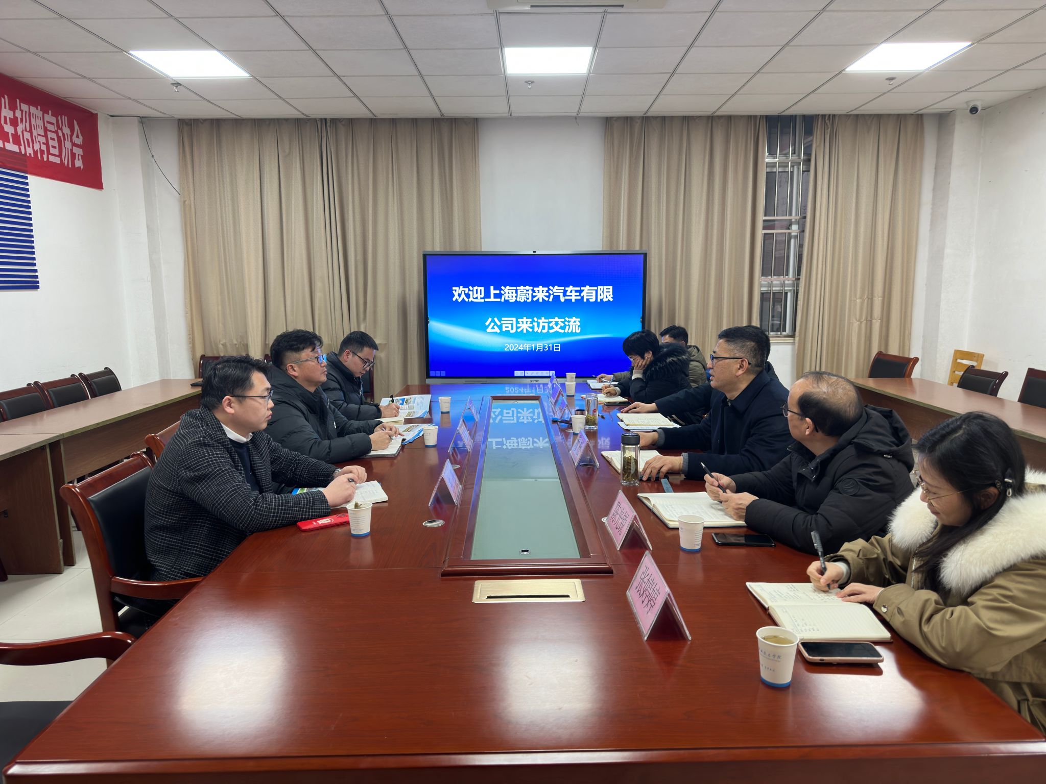 1月31日下午,上海蔚来汽车有限公司工业化校企合作负责人朱肖烈一行来访交流校企合作事宜。校长助理、招生就业处处长、安徽滁州职业教育集团秘书长穆松热情接待。教务处、招生就业处、科技处、机械与汽车工程学院有关负责同志参加了交流。