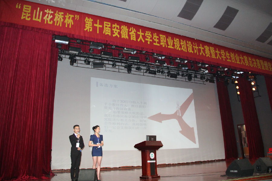 学院传媒系学生陈爽、陈慧两人组成的《圆梦3D打印工作室》和土木系学生宋宇分别参加创业组、就业组的决赛。经过激烈角逐,宋宇荣获“安徽省大学生职业规划之星(银奖)”、陈爽、陈慧两人组成的《圆梦3D打印工作室》荣获“安徽省大学生创业之星(银奖)”、学院连续八年荣获大赛“最佳组织奖”。