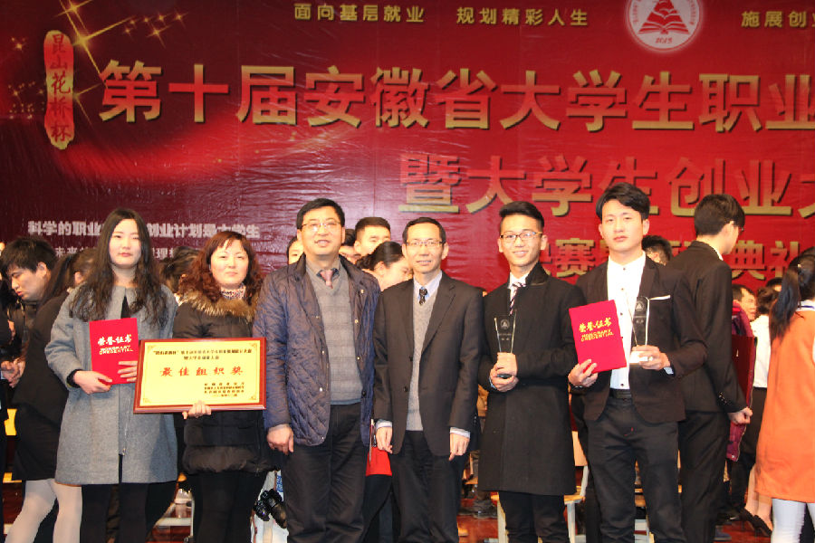 12月26-27日,由安徽省教育厅、安徽省人力资源和社会保障厅、共青团安徽省委联合主办的“昆山花桥杯”第十届安徽省大学生职业规划设计大赛暨大学生创业大赛总决赛在安徽医学高等专科学校隆重举行。省教育厅副厅长杨金龙、省大中专就业指导中心主任鲍勇等领导参加大赛颁奖典礼并讲话。