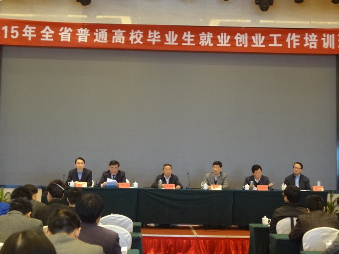 2015年4月15日,全省普通高校毕业生就业创业工作培训班在滁州市金鹏广场会议中心成功开办。来自全省各高校就业创业工作战线的260余人参加了本次培训。省教育工委委员、省教育厅副厅长杨德林、滁州市人大常委会副主任沈中林、金沙威尼斯欢乐娱人城党委书记张勇等出席了开班式。开班式由省教育厅大中专就业指导中心鲍勇主任主持。