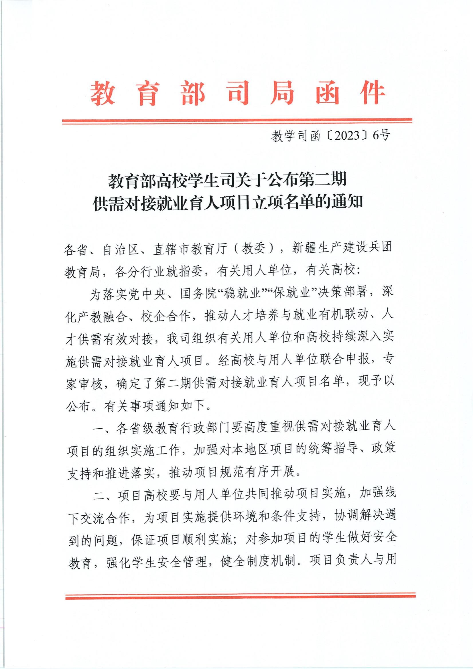 为落实党中央、国务院“稳就业”“保就业”决策部署,深化产教融合、校企合作,推动人才培养与就业有机联动、人才供需有效对接,教育部高校学生司组织有关用人单位和高校持续深入实施供需对接就业育人项目。