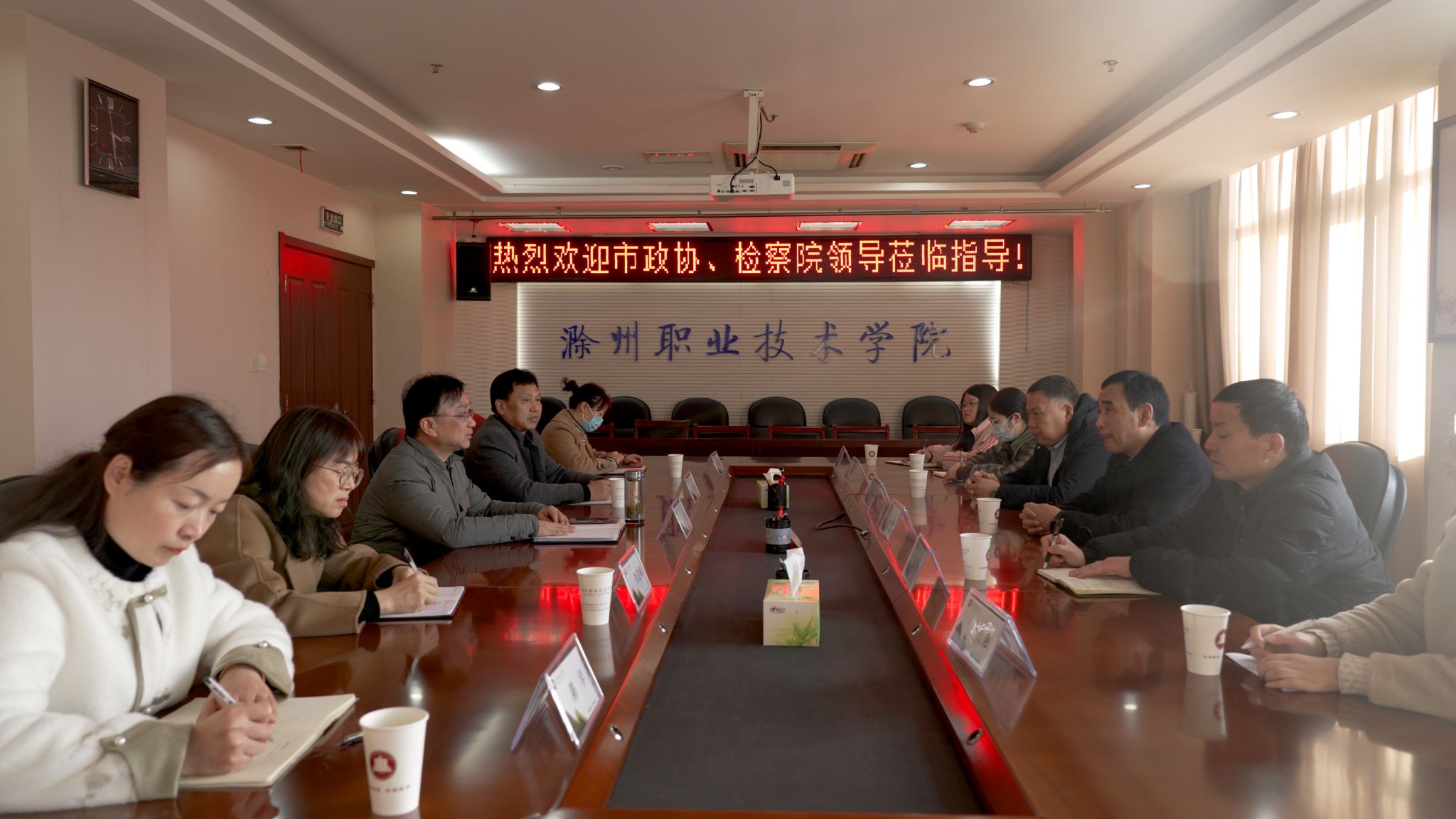 为深入贯彻落实党的二十大精神和习近平法治思想,以及关于“大思政课”的建设要求,做好“为群众办实事”,12月7日,市政协副主席、市检察院副检察长高潮、市政协社法委主任朱宏兵、市检察院第七检察部主任王昌杰等前来金沙威尼斯欢乐娱人城调研考察,校宣传统战部部长王冬、马克思主义学院院长孔金、市知联会理事李进梅热情接待。