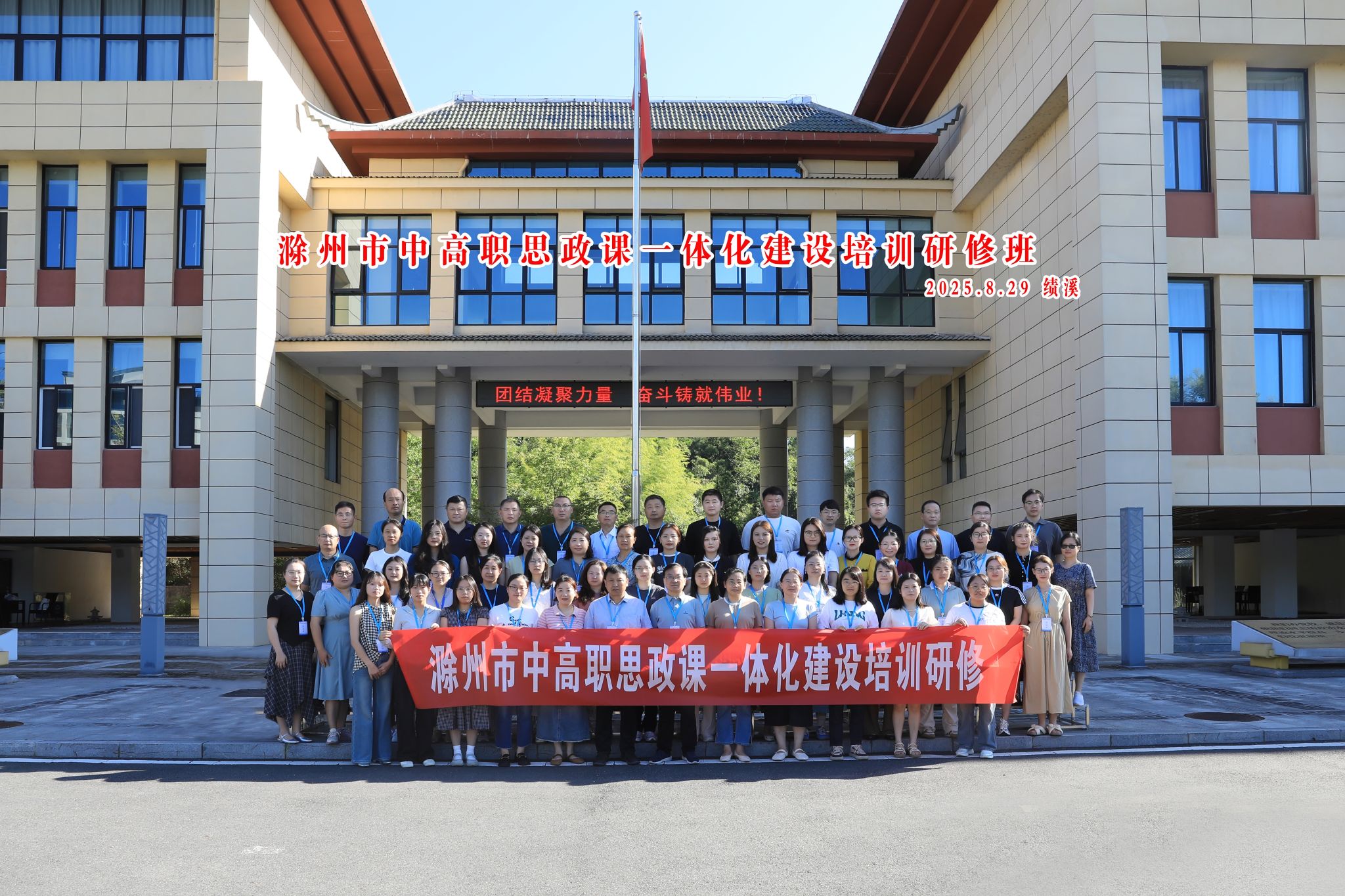 为深入学习贯彻习近平总书记对学校思政课建设的重要指示批示精神,落实中高职思政课建设协作组相关要求,发挥区域内高职院校牵头作用,引领滁州市中职学校思政课建设,促进中高职思政课教师能力提升、交往交流,推动滁州市中高职思政课内涵式发展。2025年8月28至31日,由中共滁州市教育体育工作委员会和金沙威尼斯欢乐娱人城联合主办,金沙威尼斯欢乐娱人城马克思主义学院承办,安徽省学校思想政治理论课教师研学基地(安徽财经大学)协办的“滁州市中高思政课一体化建设培训研修班”在宣城绩溪县委党校顺利开班,并圆满完成各项研修任务。本次培训研修由校党委委员、宣传统战部部长王冬带队,来自全市中职、高职等12所院校的思政课教学负责人、骨干教师等60人参加了培训研修。