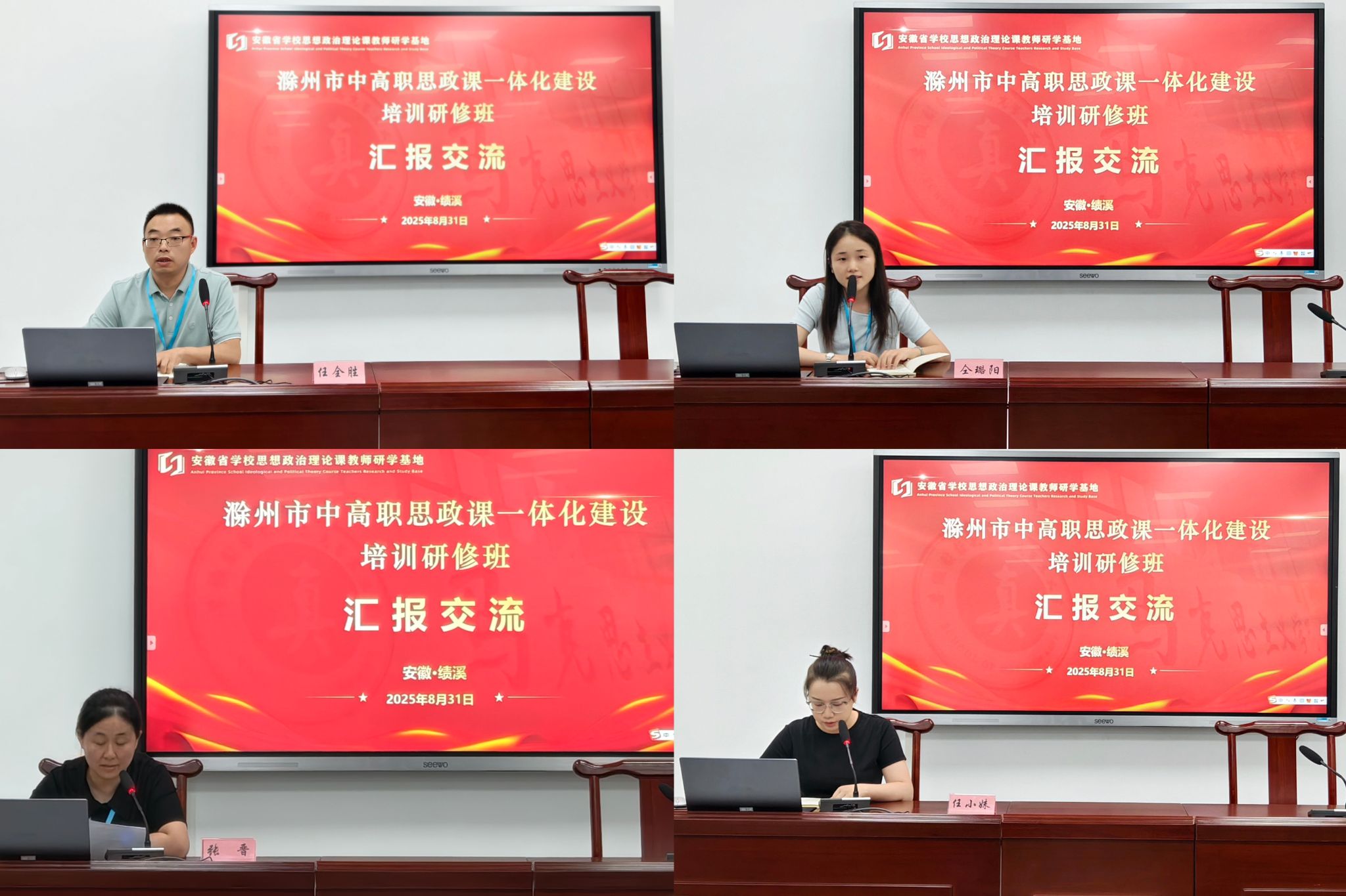 在汇报交流环节,来自滁州市机电工程学校、滁州城市职业学院等十所院校的学员代表进行主旨发言,分享学习心得和教学实践困惑。大家纷纷表示,这次研修不仅是一次业务充电,更是一次思想洗礼。通过理论与实践的结合,对推进中高思政课一体化建设的重要性、紧迫性和实践路径有了更清晰的认识,一致认为推进一体化建设是提升思政课整体质量的关键之举,并表示将把此次研修的成果转化为改进教学、铸魂育人的实际行动。