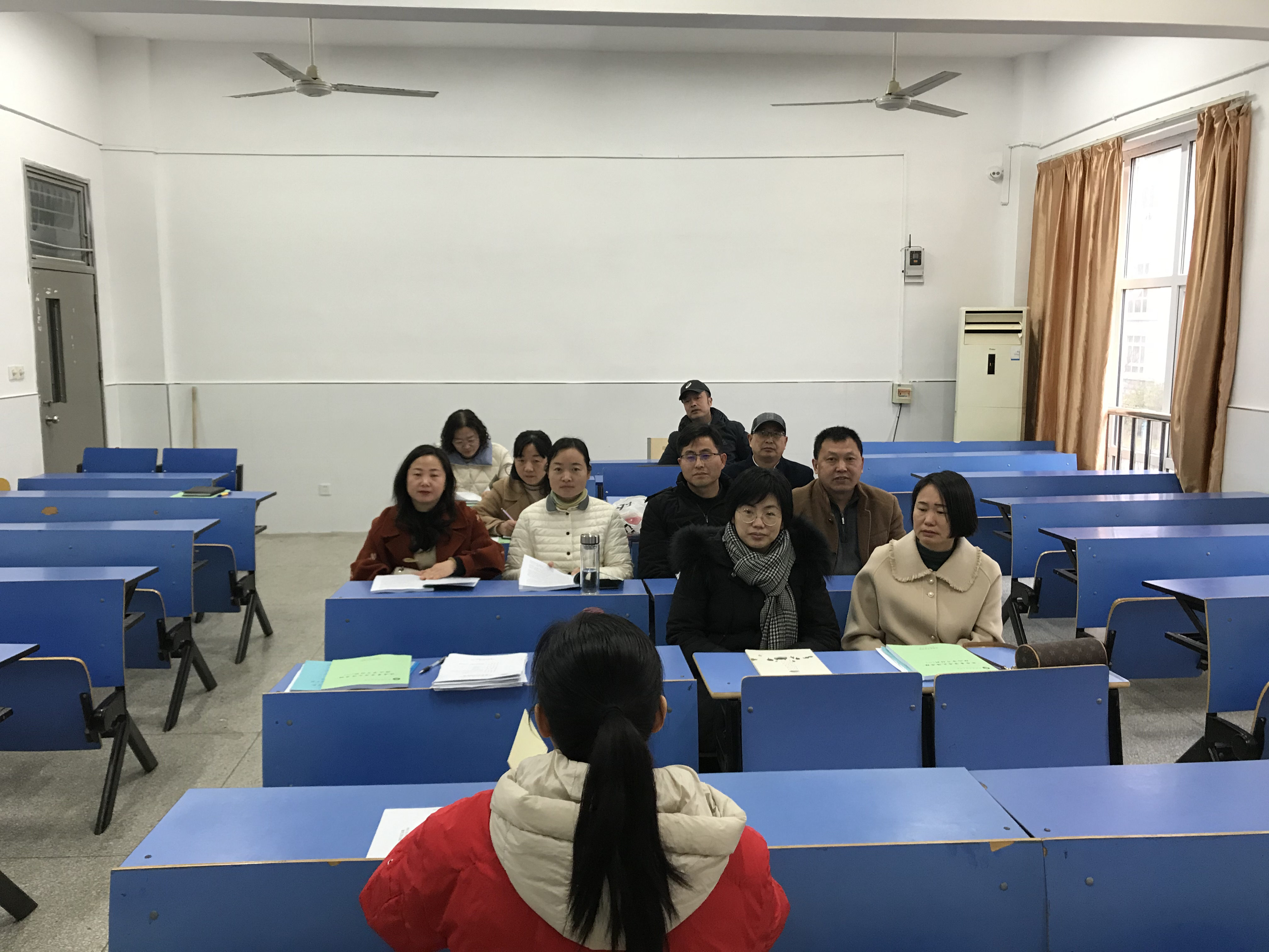 3月3日马克思主义学院党支部全体党员在至真楼1208教室组织学习“全省党史学习教育部署动员大会”会议内容。组织委员张家莉带领全体党员学习文件,孔金副院长总结发言。