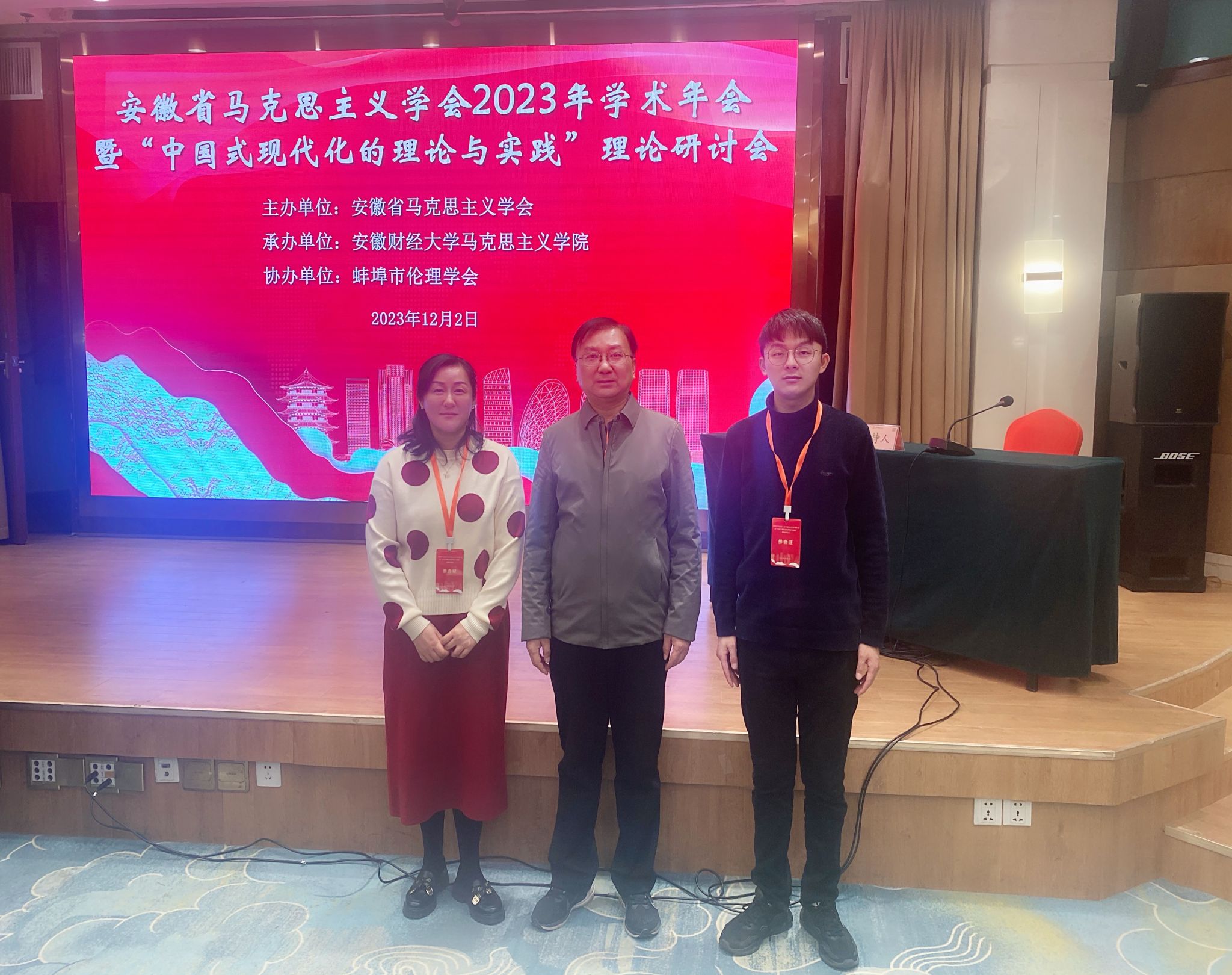 12月1—2日,安徽省马克思主义学会2023年学术年会暨“中国式现代化的理论与实践”理论研讨会在蚌埠召开,本次会议由安徽省马克思主义学会主办,安徽财经大学马克思主义学院承办,来自安徽各高校、科研机构等单位专家学者、马克思主义学院负责人、思政课骨干教师和青年研究生共100多人参会。校党委委员、宣传统战部部长王冬带队,马克思主义学院副院长张家莉、青年教师许红雷参加会议,张家莉提交了会议论文。