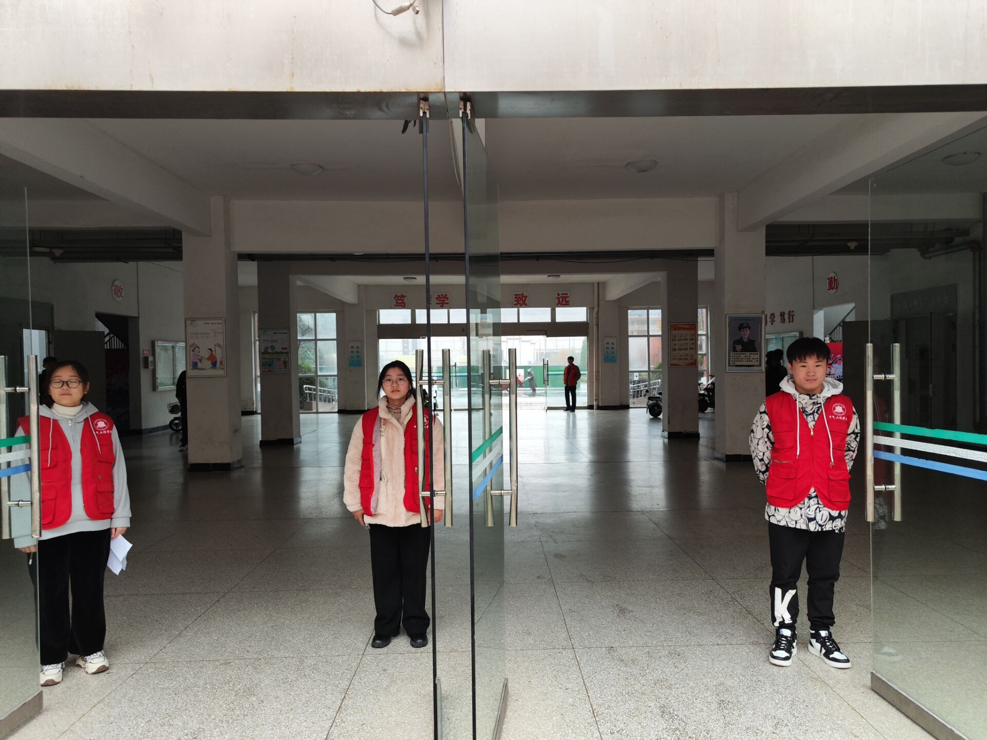 在此次督察工作中,主要由机械与汽车工程学院志愿者在学院各个入口对迟到、带早餐及穿拖鞋进入楼内的不文明现象予以制止并做好工作记录尽管早晨的天气很是寒冷,但是志愿者们早早的在教学楼门口集合,身着红马甲的志愿者们都以昂扬的精神风貌站在自己的岗位前,为冬季的校园增添了一抹鲜艳的红色。