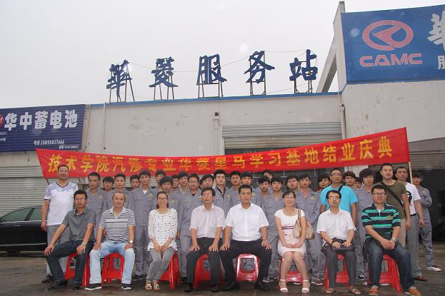 2014年6月21日下午,我院汽车工程系与滁州市华宇汽车销售服务有限公司签订了校企合作协议,12级汽车专业学生在滁州市华宇汽车销售服务有限公司汽修岗位顶岗实习的结业仪式同时举行。汽车工程系教学工作负责人张信群教授、汽车教研室全体教师、12级汽车专业辅导员和部分学生参加了仪式。