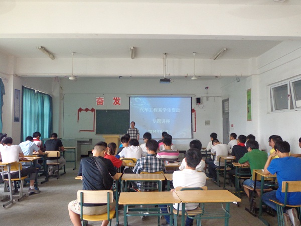 2014年6月5日,汽车系资助负责人张记老师在5212教室为全系办理助学贷款的同学做了一场学生资助专题讲座。