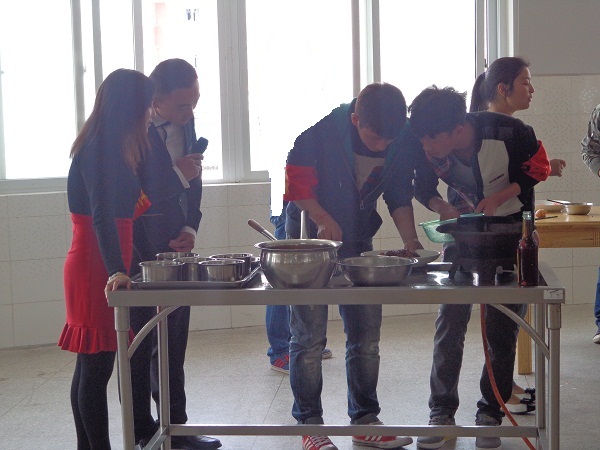2014年4月23日中午,学院第二届大学生美食节之“你问我答 厨艺大比拼”系列活动在新食堂3楼举行。学院各系部分同学参加,汽车系吴佳佳,赵晶丽老师出席活动。