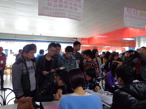 为了更好的解决大学生就业难问题,缓解大学毕业生就业压力,2014年11月15日,学院在新食堂三楼大厅举办了招聘会,本次招聘会共有90多家企业参与。