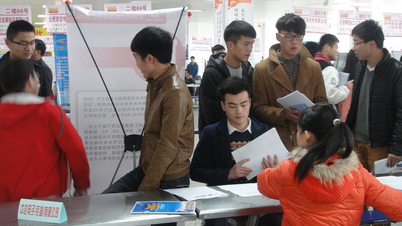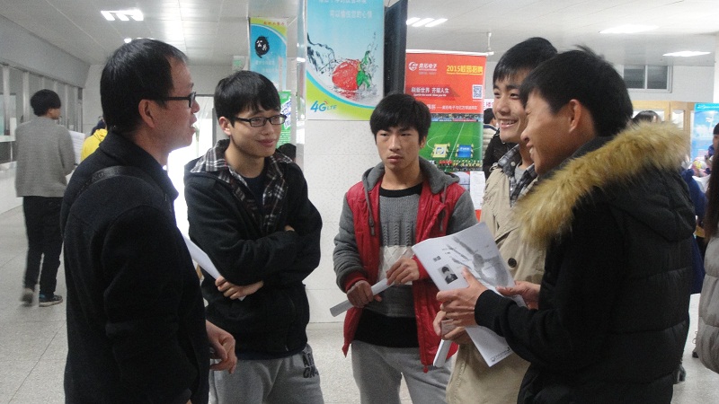 2014年11月29日,金沙威尼斯欢乐娱人城在新食堂二楼、三楼举行2015届毕业生双选会,汽车系同学们积极参加此次招聘,系领导和各班辅导员在招聘会现场指导同学们应聘。
