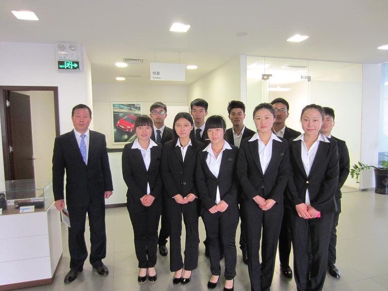 各家4S店的部门经理均给同学们召开了会议,介绍了相关事宜,其中包括店内礼仪、前台接待、售后服务等等,然后同学们根据部门要求分别进入岗位学习实践。