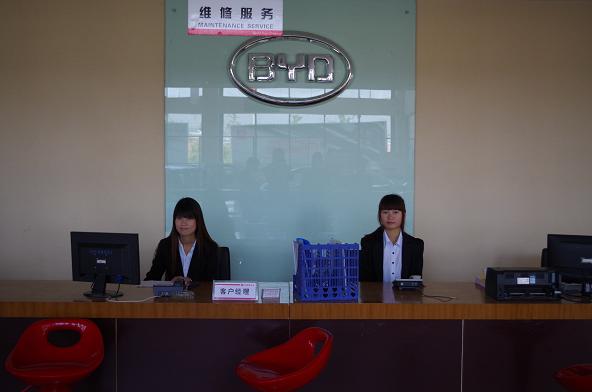 此次分到滁州畅通比亚迪4S店的汽营(1)班8名同学受到了公司的热情接待,专门安排人员对同学们进行了培训,然后根据岗位需求将八名同学分成了两组,四人在前台销售,四人在售后服务。