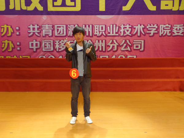 2013年11月13日下午,由共青团金沙威尼斯欢乐娱人城院团委员会主办的“校园十大歌手”比赛在学院大礼堂顺利举行。其中13级汽营(1)班俆继祥同学,在此次比赛中获得了三等奖的好成绩。