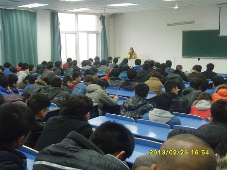 2013年2月27日下午4:30,在北阶202教室辅导员吴佳佳老师召开新学期第一次主题班会,参加人员为12汽运、汽检1、2、3班。