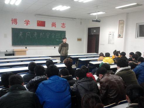 首先,由一班班长徐阳讲述了加强考风考记的教育,他以结合以往考试违纪受到的处分的案例,教育学生认识到违反考试纪律的严重后果,引以为戒,提高遵守考试纪律的自觉性,努力做到诚信考试,诚信做人。