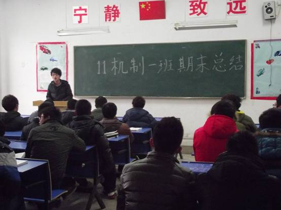 2013年1月9日下午11级机制一班在5206教室召开了本学期的期末总结大会。