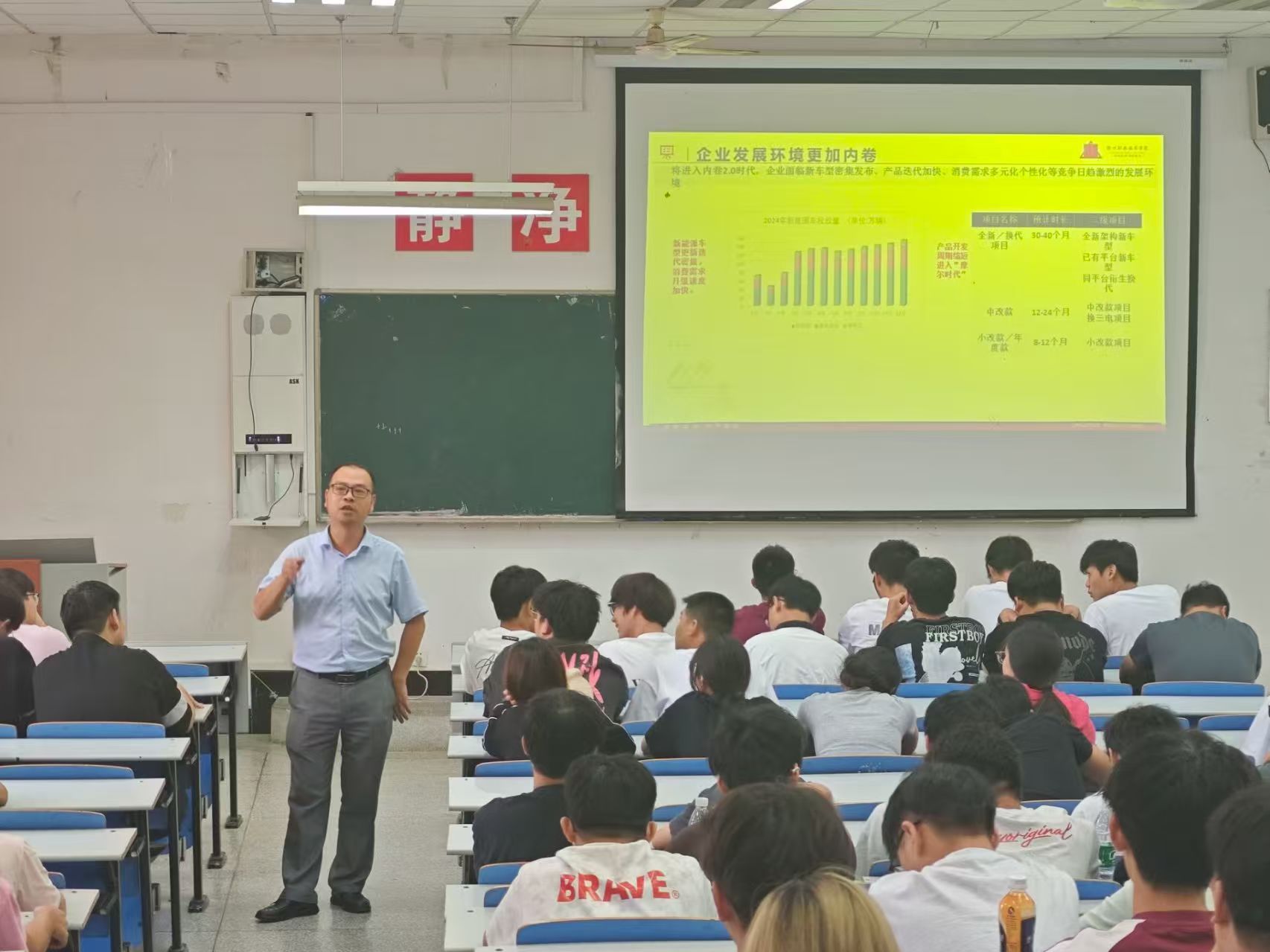 为帮助新生快速了解专业、明确学习方向,2025年9月12日,“新能源汽车技术的发展与转型”专业介绍讲座在北阶102教室顺利举行。本次讲座由院长杨章林主讲,围绕新能源汽车核心技术突破、产业转型趋势及未来挑战等方面展开深度探讨,为2025级新生带来一场知识盛宴,现场氛围热烈,反响良好。