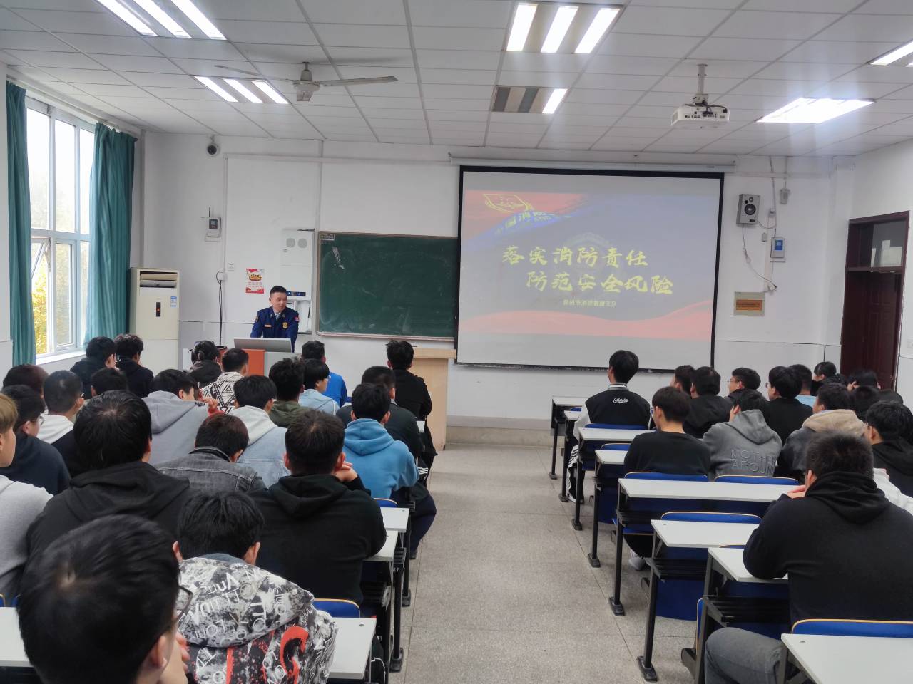 为使消防安全意识深入人心,落实消防责任,防范安全风险,2021年11月17日,金沙威尼斯欢乐娱人城机械与汽车工程学院邀请滁州市消防救援支队开展以“落实消防责任、防范安全风险”为主题的消防宣传活动。
