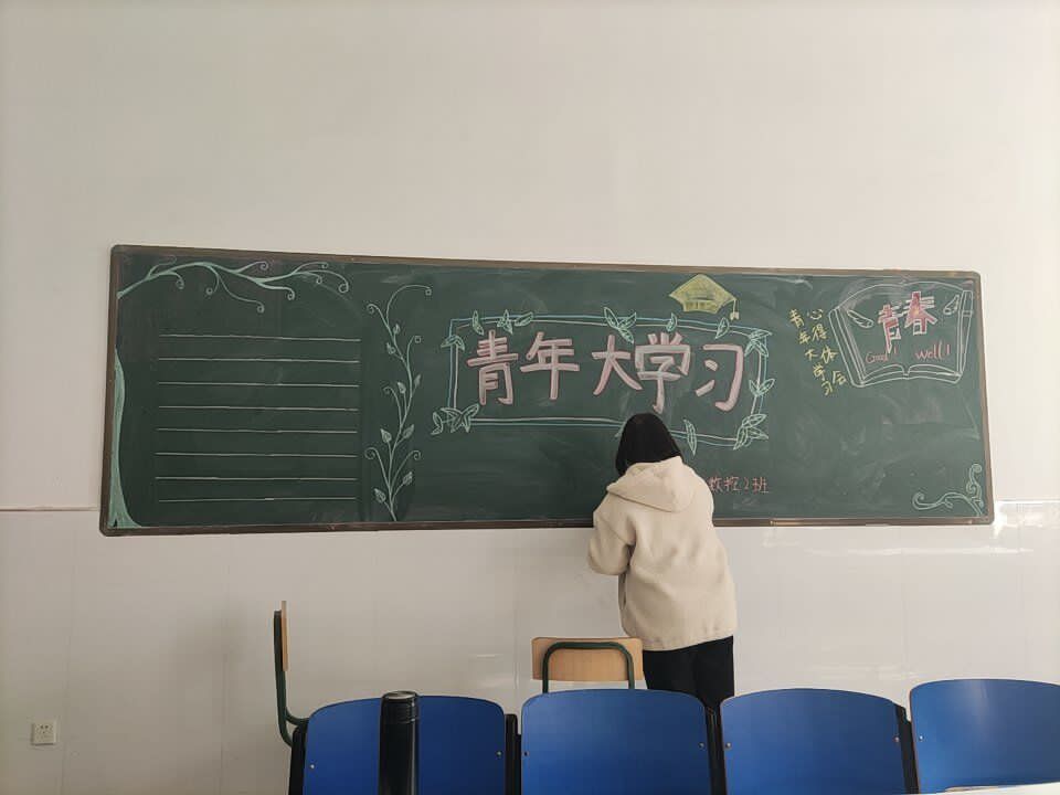 活动开始,同学们都十分的积极去画黑板报,同时也学习到了青年大学习是共青团中央为把组织引导广大青年深入学习宣传贯彻习近平新时代中国特色社会主义思想和党的十九大精神持续引向深入组织的青年学习行动。