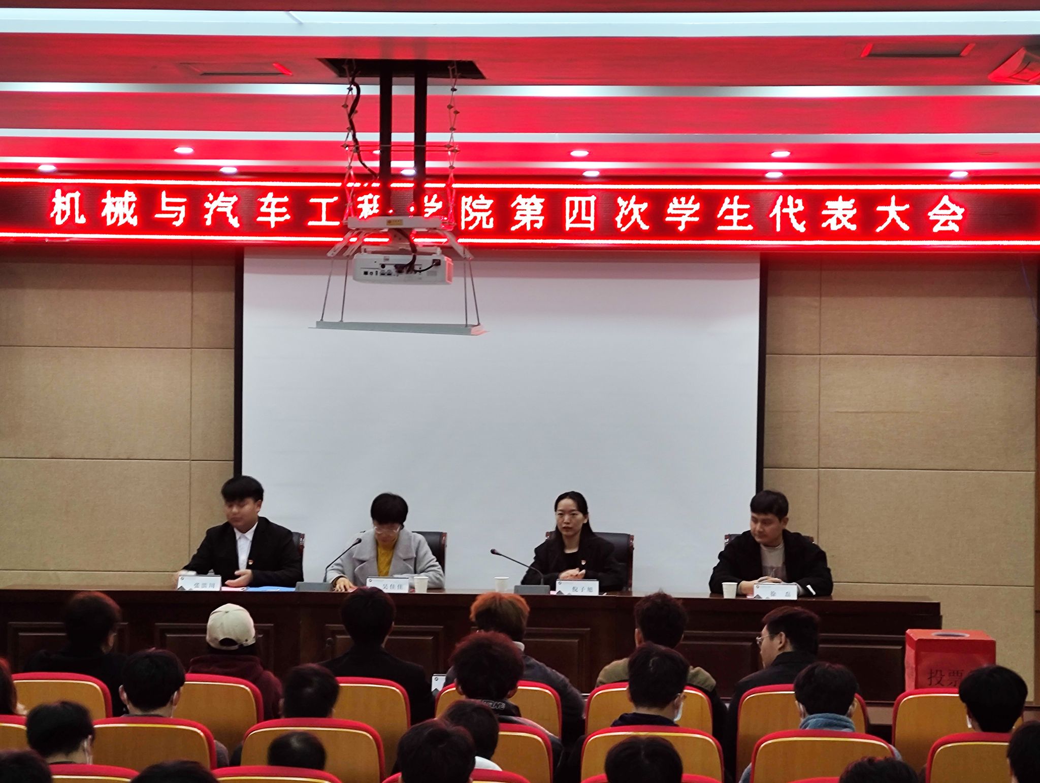 12月1日中午,机械与汽车工程学院在南阶205召开了第四次学生代表大会。出席本次会议的有党总支副书记吴佳佳、团总支书记倪子旭、学生会第十届主席团成员和83名学生代表参会。