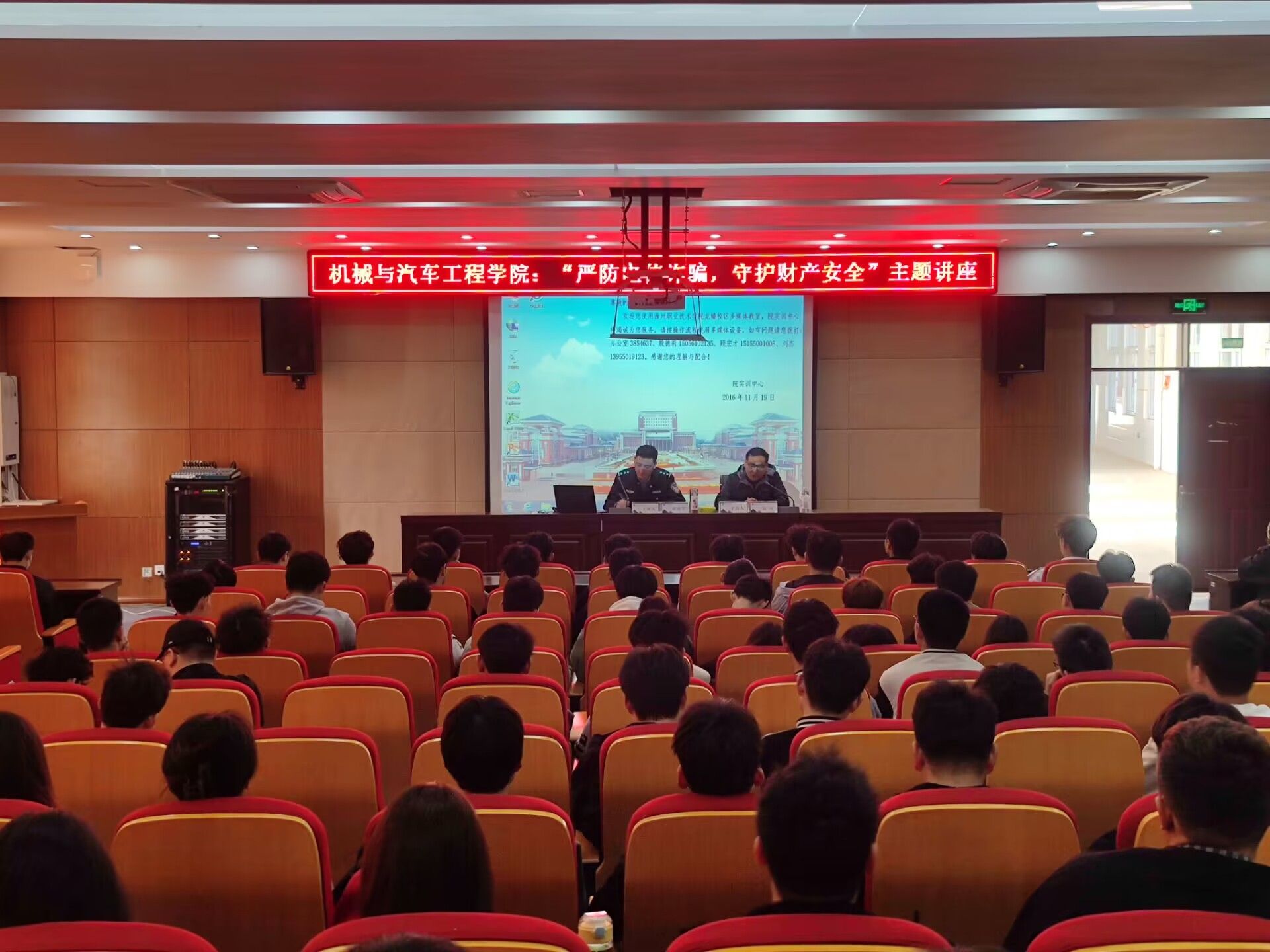为进一步加大防范电信网络诈骗宣传力度,增强学生防范电信网络诈骗的安全意识,维护学生群体的切身利益,构建稳定、安全、和谐的校园环境。3月15日上午,由机械与汽车工程学院主办、智能制造学院承办的“严防电信诈骗,守护财产安全”主题讲座在南阶205教室举行,讲座邀请了滁州市公安局南谯分局四级警长郭虎军警官主讲,学院各班级160余名学生代表参加。讲座由刘杰主持。