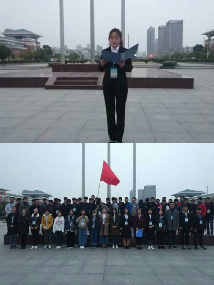 为倡导我系学子成为有理想、有追求、有担当、有作为、有品质、有修养的六有大学生。汽车系学生会于2017年11月29日早上6:30在综合楼前升旗台下,组织开展了“争做六有大学生”国旗下宣誓活动,参加本次活动的为汽车系学生会全体成员。