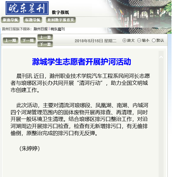皖东晨刊报道汽车系志愿者开展“清河行动”助力文秘创建