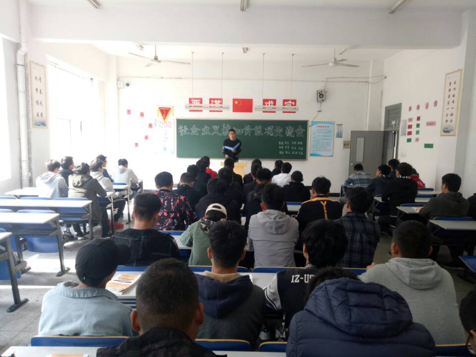 为积极响应社会主义核心价值观的号召,践行社会主义核心价值观实现中国梦。金沙威尼斯欢乐娱人城汽车工程系2018级汽车营销与服务团支部于2018年11月13日晚,在教学楼5号楼5310开展主题班会活动。