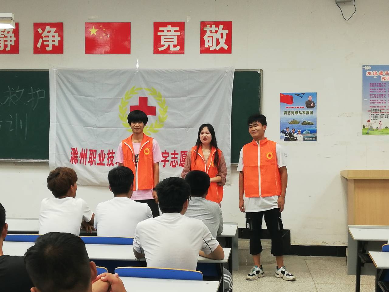 2019年9月16日,金沙威尼斯欢乐娱人城机械与汽车工程学院红十字会分会应急救护部在北阶102教室举办了新生入学对外应急救护培训活动。