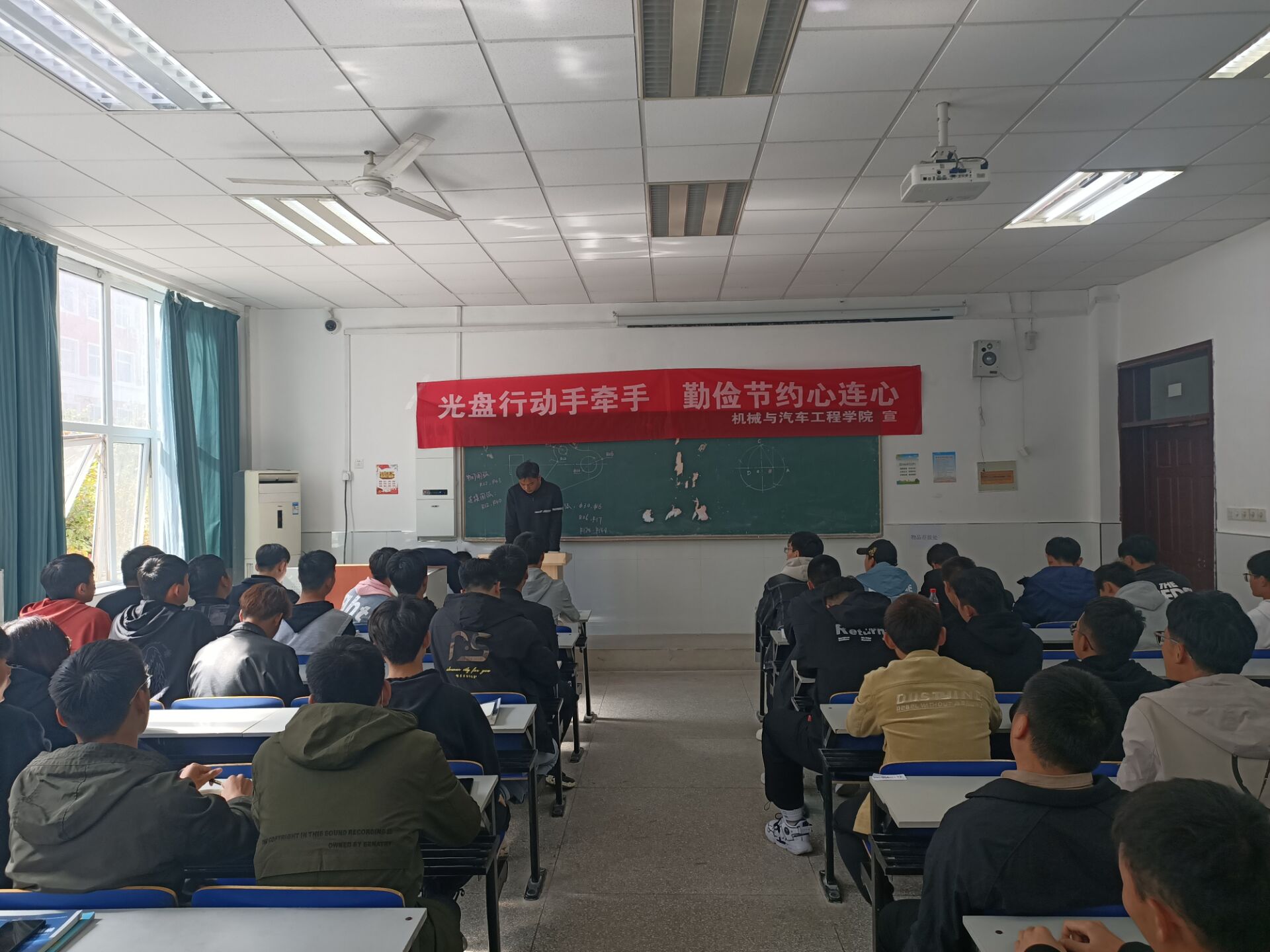 为大力提倡文明用餐的良好风气,培养同学们的节约意识,2020年11月4日中午12时,金沙威尼斯欢乐娱人城机械与汽车工程学院团总支,在5113教室开展以“光盘行动手牵手,勤俭节约心连心”为主题的活动,干事们积极参加。