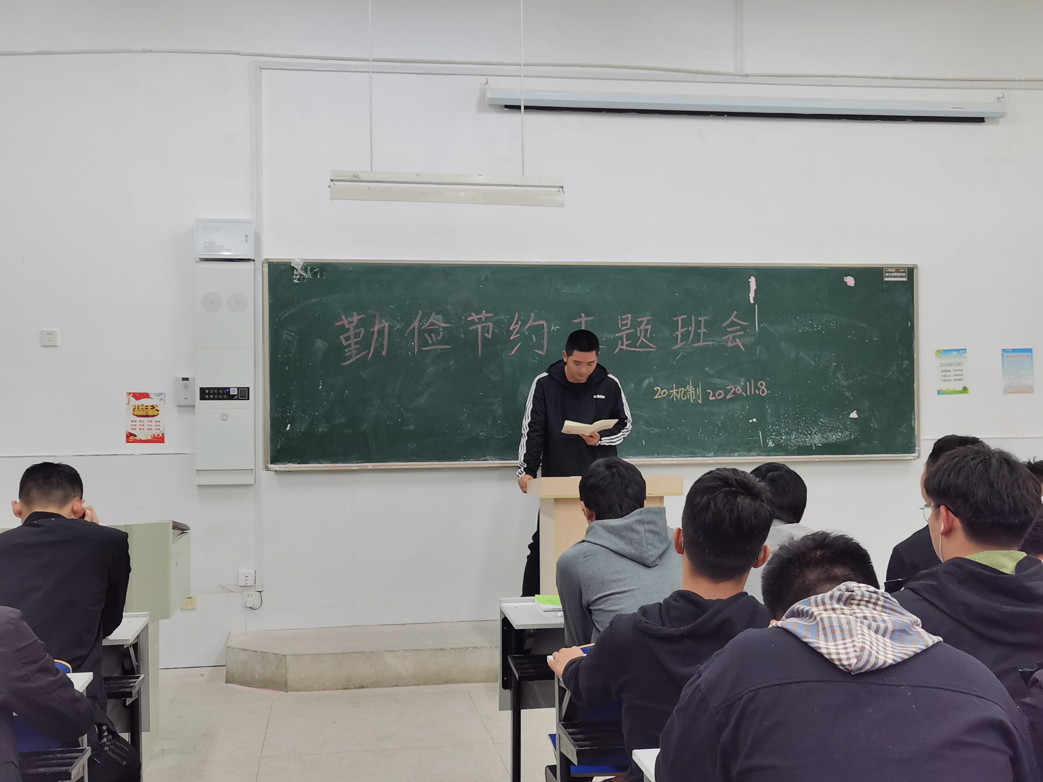 为大力提倡文明用餐的良好风气,培养同学们的节约意识。2020年11月8日晚上7时,金沙威尼斯欢乐娱人城机械与汽车工程学院2020级机械设计与制造班,在5104教室开展以“勤俭节约”为主题的班会,同学们积极参加。