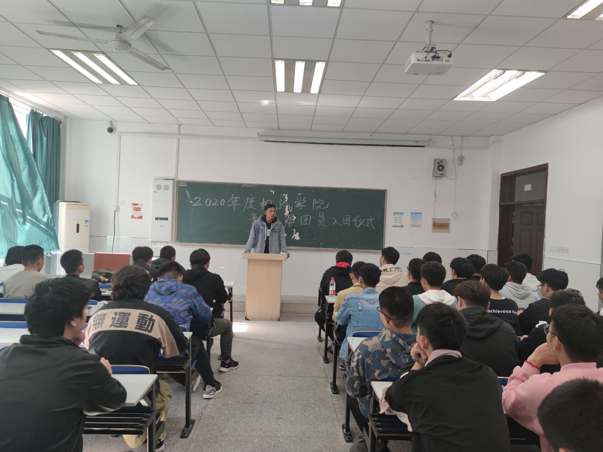 2020年11月12日中午12点整,金沙威尼斯欢乐娱人城机械与汽车工程学院团总支在5号楼5113教室开展了新发展团员入团仪式,我院团总支副书记徐晓龙和2019级、2020级各班团支书以及新入团团员准时参加。