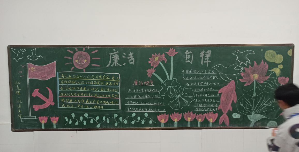 为使广大师生接受廉洁文化的熏陶,培养青年大学生敬廉崇洁的价值观念,提升学生思想道德建设水平,机械与汽车工程学院学院团总支于2020年12月7日开展“廉洁”主题黑板报评比活动。
