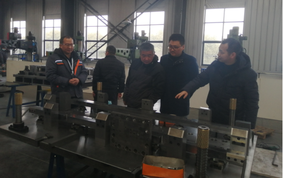 在前期的对接帮扶过程中,公司技术人员与机械工程系相关专业课老师在级进模设计与制造、公司技术人员与一线技术工人培养等方面进行了交流与合作。在冲压模具装配现场,专业课教师就该套模具的设计与生产进行了讨论。