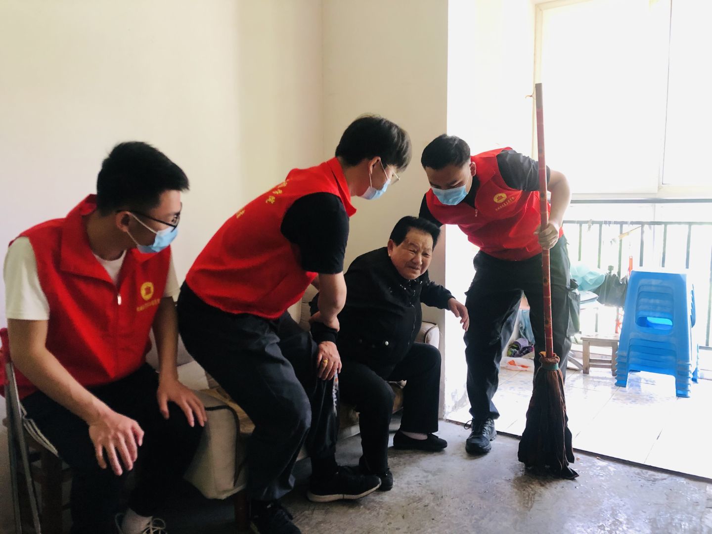 在社区工作人员的带领下,志愿者来到老人家中。大家分工行动,擦玻璃、扫地、整理床被,不一会就把屋子打扫的干干净净,老人脸上露出开心的笑容,不停地说着感谢的话语。随后,志愿者关切地询问老人的身体状况和生活情况,和他们话家常,聊天解闷,叮嘱他们注意身体,保持健康、良好的心态。
