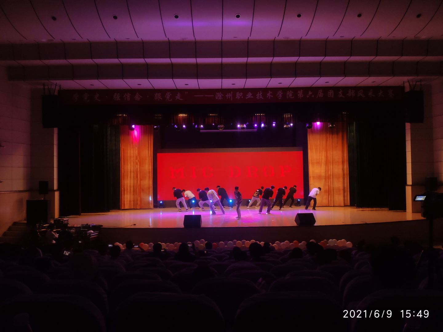 我院团总支高度重视此次大赛,从接到通知后就迅速的行动了起来,精心挑选了流行舞《Mic Drop》参加比赛。在备赛期间,老师和选手们牺牲了自己的课余时间,在音乐的剪辑,舞蹈的编排,动作的纠正等方面做了大量精心的准备。最终,在赛场上,我院孙运栋、王少成 、杨涛等同学表演的流行舞《Mic Drop》以动感的节奏、创意的编排、完美的演绎博得在场观众的欢呼声,体现出我院青年学生良好的身体素质和艺术素养。