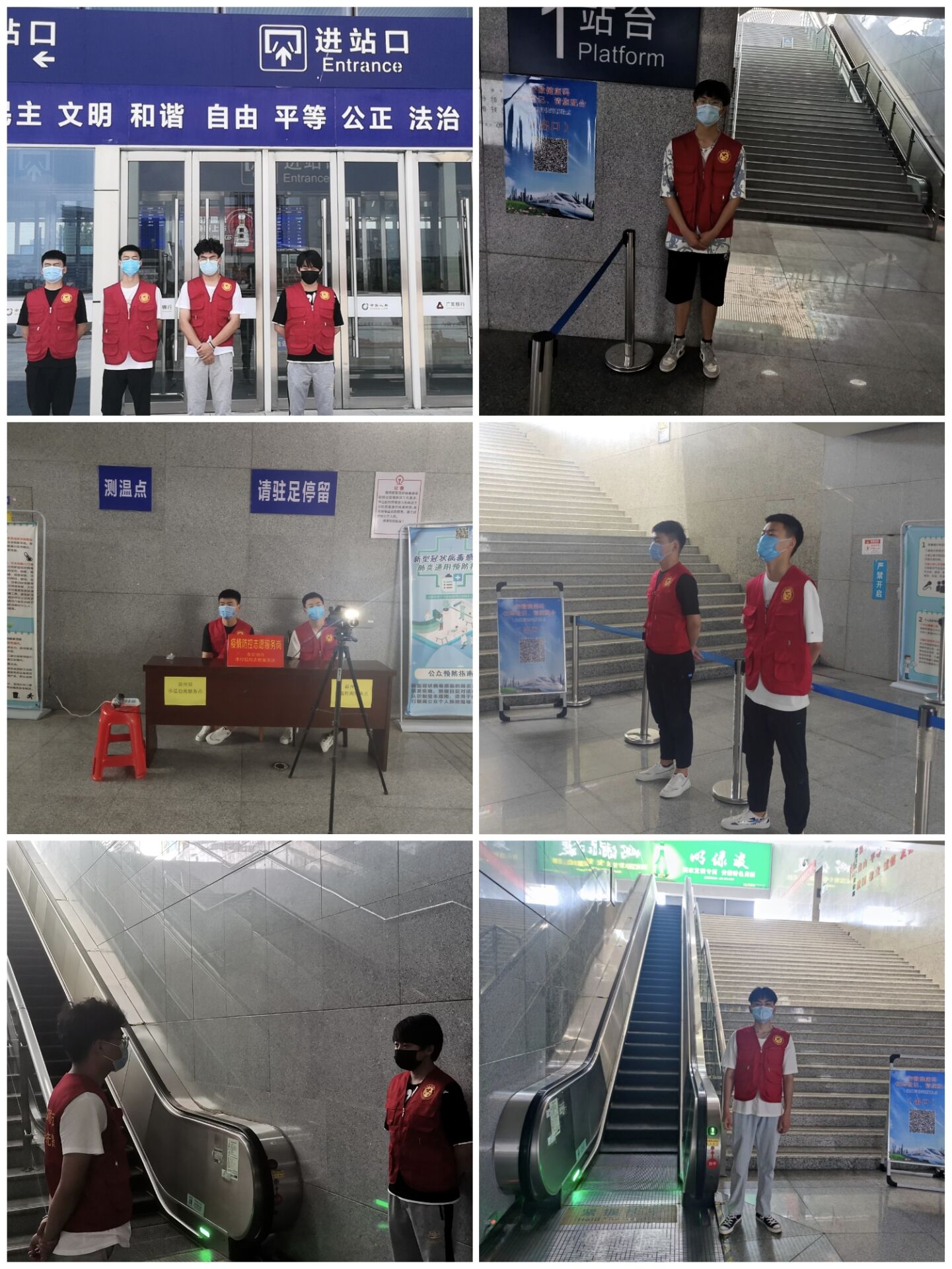 活动伊始,在经过高铁站工作人员的简单培训后,志愿者们身穿红色马甲,纷纷站到自己岗位上,仔细检查过往旅客的健康码,耐心的为过往旅客解惑、指路,与工作人员相处融洽,认真负责地帮助旅客解决问题。