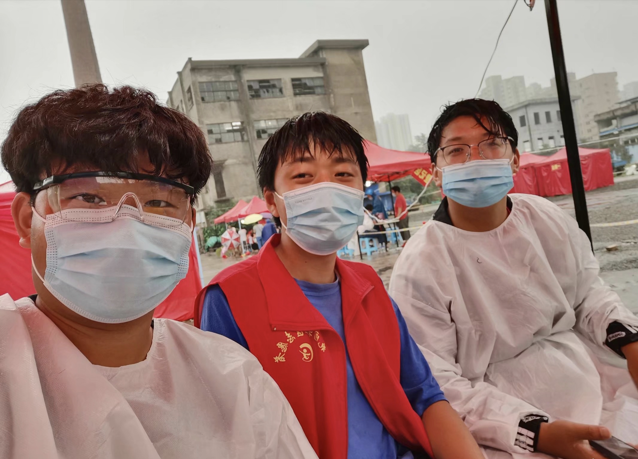 张滨川同学负责在花园一巷防控点进行疫情防控常态化工作,从早上八点到晚上十点要做到“健康码和行程码”两码、体温的检查工作,逢人必检、逢车必查,守护居民的健康与安全。此外,在睢宁县全民核酸演练中,张滨川同学负责柠檬酸厂的消杀工作,在30多度的高温下,穿上密布透风的防护服,为核酸检测场喷洒消毒液,保障核酸检测安全进行。