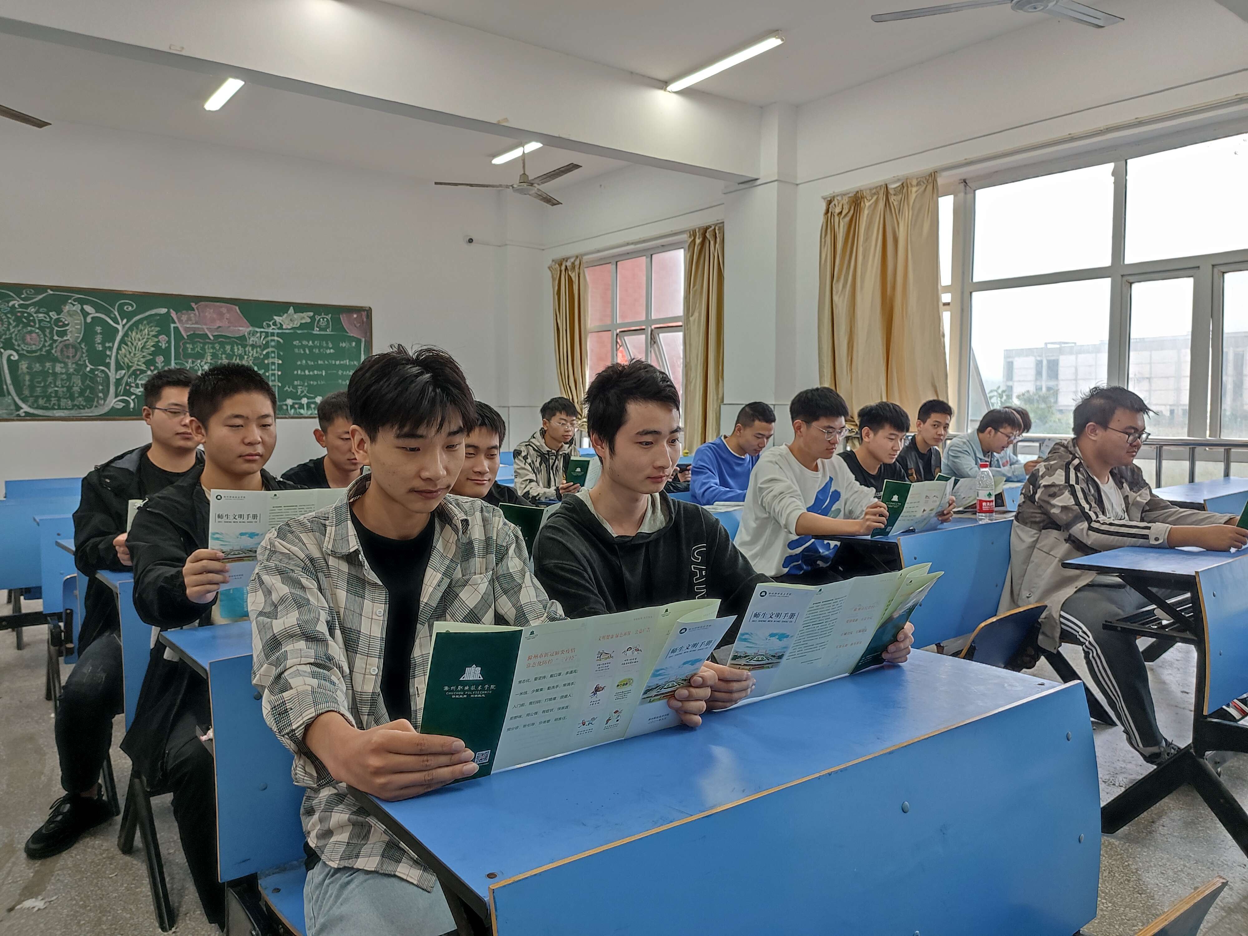 班会上,各班辅导员给学生发放了师生文明手册,带领学生学习了手册中的内容如《滁州市民公约》、《滁州文明16条》(2.0版)、《高等学校学生行为准则》、《文明骑行倡议书》等,教育学生要自觉维护校园环境卫生,坚决抵制不文明现象和不文明行为,展现滁职学子良好的精神风貌。