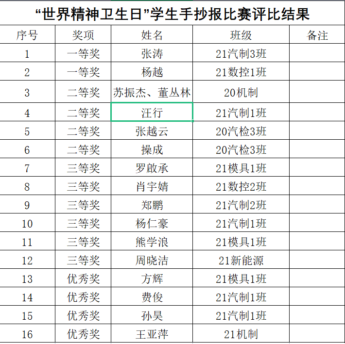 在2021年“世界精神卫生日”来临之际,为进一步提升全院学生的精神卫生意识和心理健康素养,金沙威尼斯欢乐娱人城机械与汽车工程学院团总支于2021年10月下旬开展了“世界精神卫生日”手抄报评比活动。