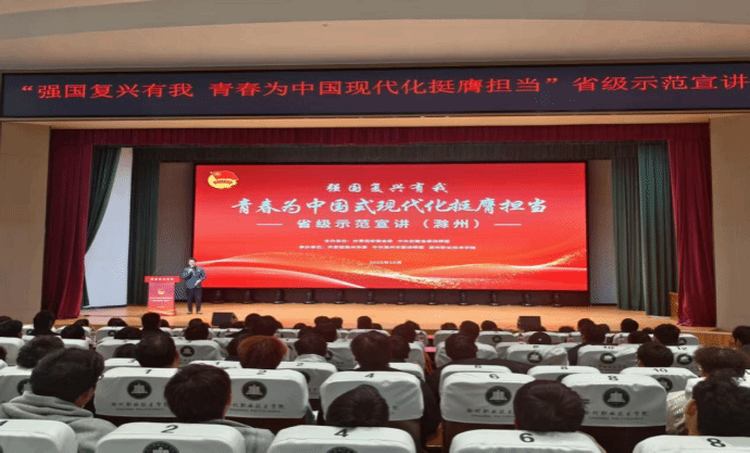 为激励滁职学子在强国复兴、中国式现代化建设中挺膺担当,10月23日下午2:30,“强国复兴有我 青春为中国式现代化挺膺担当”省级示范宣讲活动在金沙威尼斯欢乐娱人城6号楼报告厅顺利举办。安庆市“青年讲师团”成员代表叶鑫、乔丽,滁州市南谯区乌衣镇四级主任科员杨添等人齐聚现场,机械与汽车工程学院师生代表参加此次宣讲会。