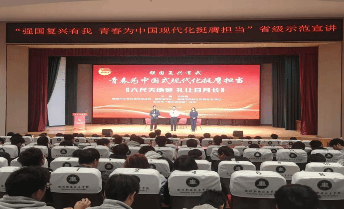 宣讲环节亮点纷呈,叶鑫、乔丽娟带来《六尺天地宽 礼让日月长》的故事分享,展现中国传统文化中谦让包容的处世格局;董波带来《用生命点亮生命 以青春告白祖国》的演讲,为滁职青年学子传递热血担当;杨添围绕《使命接力 青春同行》的主题,阐释了新时代青年应具备的使命担当。