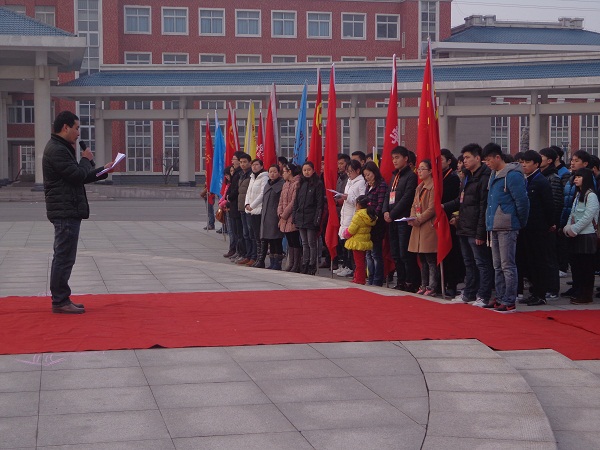 2014年3年5日7点,院学雷锋志愿者主题升旗仪式在国旗下举行,院团委书记王蓓蓓、副书记刘杰、各系部团总支书记、各系部学生参加,汽车系十九个团支部的部分参与其中。