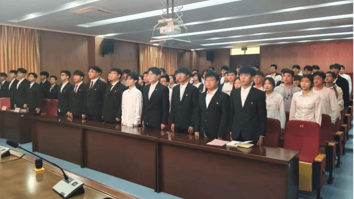 大会在庄严的国歌声中拉开帷幕,全体与会人员起立,齐唱国歌。会上,学生会负责人周泽涛、李震伟先后发言,分别回顾学院学生会过往工作成效,围绕学生服务、校园活动、学风建设等方面展开汇报,提出未来学生会工作的思路与规划。