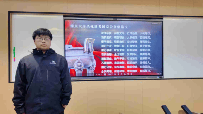 活动伊始,学生会主席杨子豪同学引领全体起立,齐声朗读南京大屠杀死难者国家公祭鼎铭文。铿锵有力的诵读声在会场内回荡,将大家的思绪带回到那段山河破碎、同胞蒙难的苦难岁月,使同学们更加深刻地领悟到铭记历史、守护和平的深远意义。